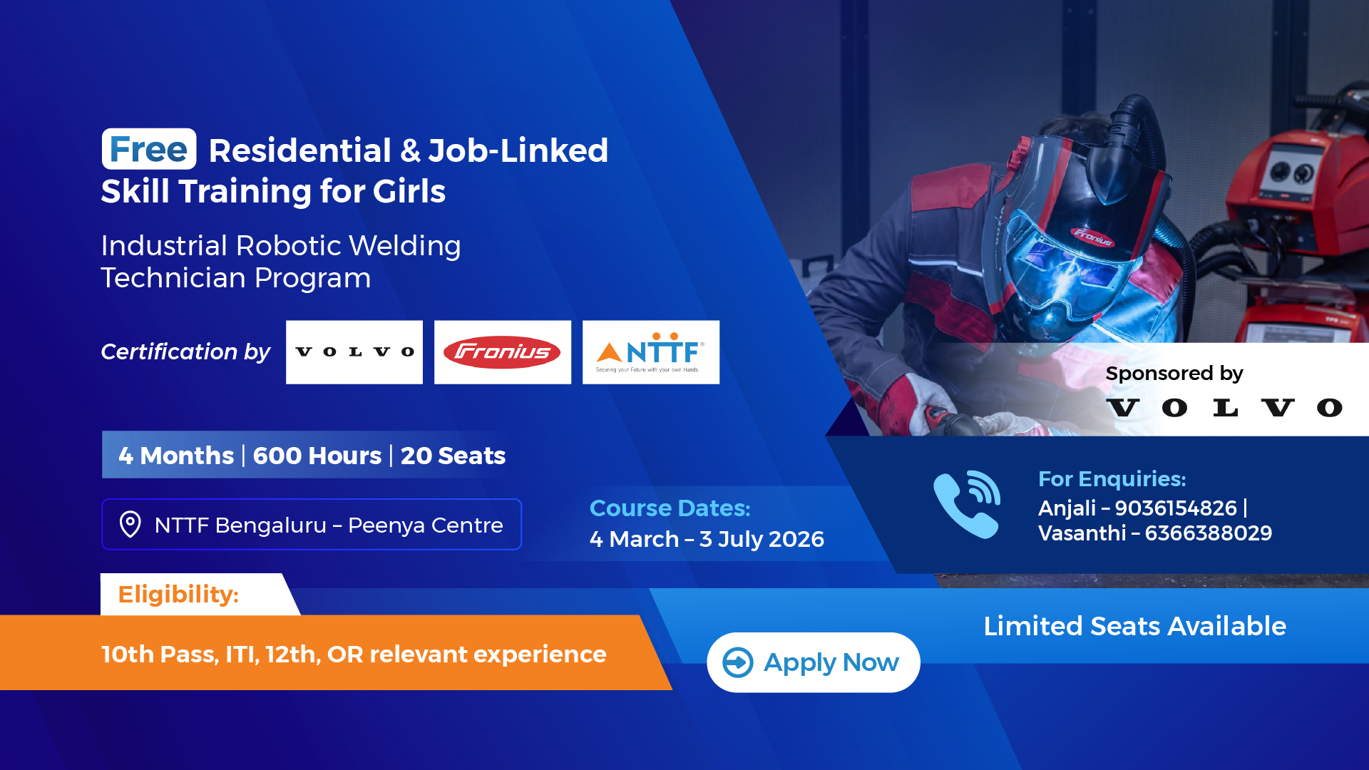 On this official NTTF website, navigate to the “Admissions” tab on the menu or to the respective program page you’d like to apply for. Here, you will find detailed information about the programs offered, eligibility criteria, and application procedure. You can fill up the form or call our toll free number 1800 103 6883. All of the NTTF programs may require candidates to appear for an entrance exam. Prepare for and appear in the entrance exam as per the schedule provided by NTTF. You can also apply in-person. you can visit the nearest NTTF campus or your preferred campus location.