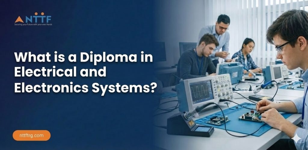 At NTTF (Nettur Technical Training Foundation), the Diploma in EE (CP23) offers a career-focused approach, blending in-depth theoretical knowledge with practical expertise. Whether your goal is to join a dynamic industry or innovate the next big thing, NTTF’s Diploma courses in Electrical and Electronics Systems is the key to unlocking your potential. Let’s explore how this diploma can electrify your career, prepare you for a tech-driven world, and position you as a leader in one of the most exciting engineering fields.